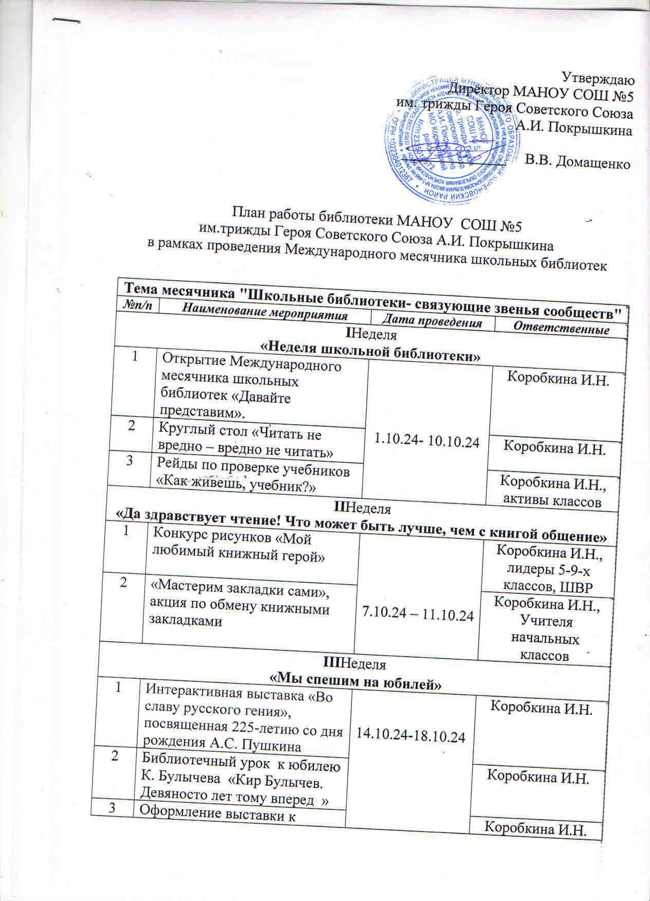 7. Информация о проведении мероприятий приуроченных к Международному месячнику библиотек имеется на сайте школы .