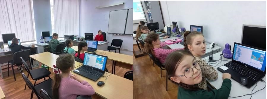 СОШ 5 Центр образования естественно -научной и технологической направленностей "Точка роста". Ребята 3г класса на занятии по SCRATCПРОГРАММИРОВАНИЮ. Руководитель "Технологической лаборатории" Елена Вадимовна Лознова.